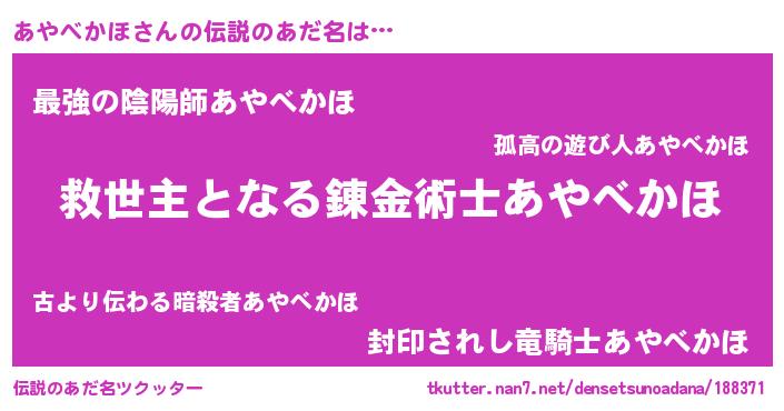 | 意味不明あだ名 | 『住所不定無職あやべかほ(95歳)』 |