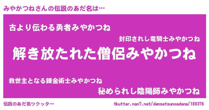 | ヘコむあだ名 | 『みやっ子』『みやかつね(小並感)』 |