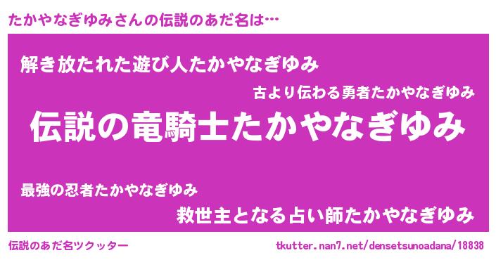 | 男性向けラノベタイトル風あだ名 | 『はたらくたかやなぎゆみさま!』 |