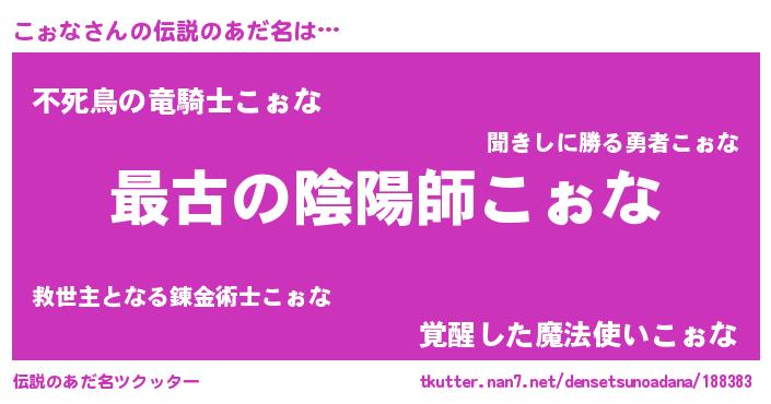 | ヒーロー風カッコイイあだ名 | 『最強戦士コォナ』『ウルトラこぉなマン』 |