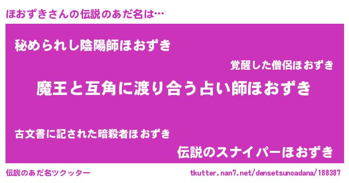 | 男性向けラノベタイトル風あだ名 | 『Re:ほおずきから始める異世界生活』 |