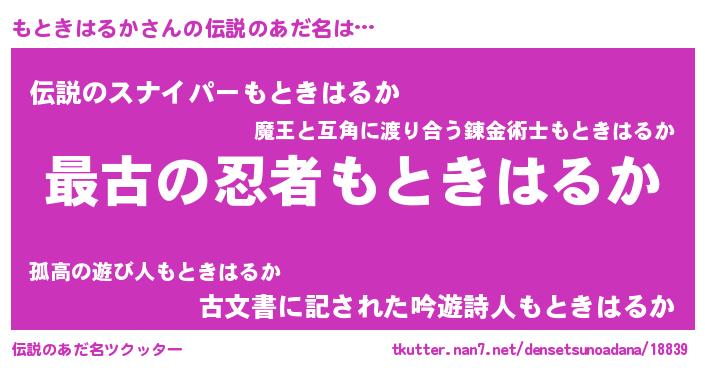 | 意味不明あだ名 | 『自称もときはるか』 |