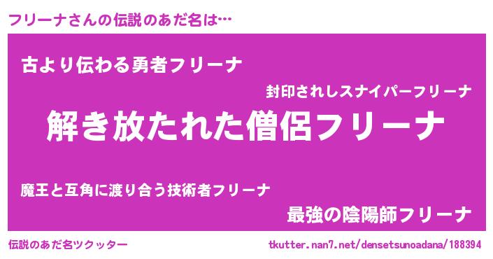 | ヒーロー風カッコイイあだ名 | 『銀牙騎士フリ』『ネオフリーナ』 |