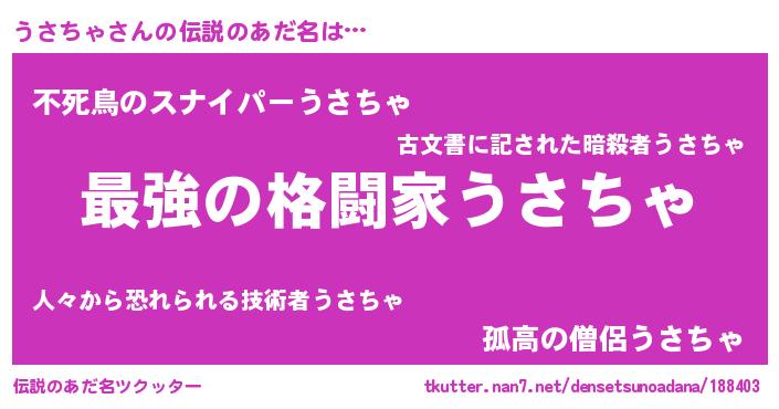 | ヒーロー風カッコイイあだ名 | 『最強戦士ウサチャ』『仮面ウサダー』 |