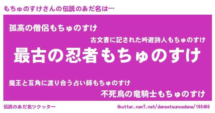 | 女子向けラノベタイトル風あだ名 | 『乙女ゲームの破滅フラグしかない悪役もちゅのすけに転生してしまった…』 |