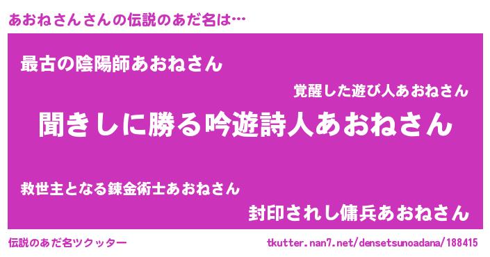 | ヒーロー風カッコイイあだ名 | 『ネオアオネサン』『スーパーアオネサン』 |