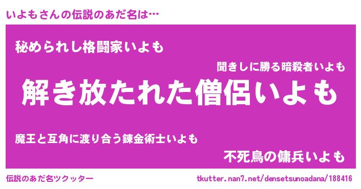 | 意味不明あだ名 | 『とにかく怪しいいよも』『自称いよも』 |
