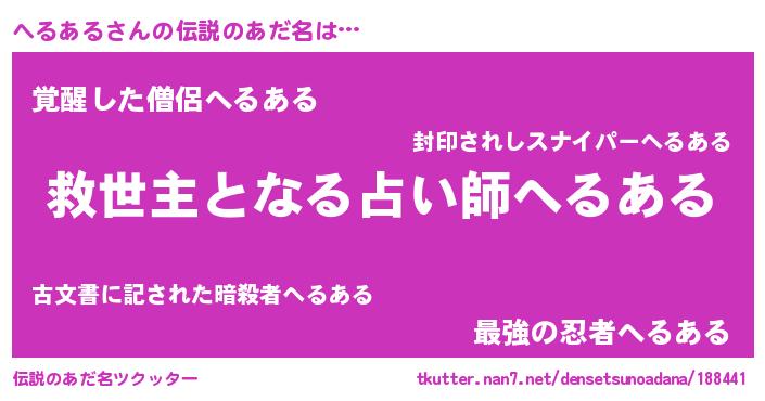 | ヒーロー風カッコイイあだ名 | 『仮面ヘルダー』『サイバー戦士ヘルアル』 |