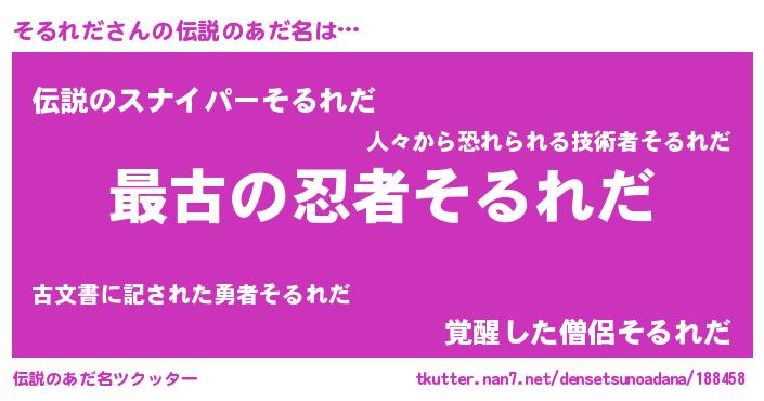 | 男性向けラノベタイトル風あだ名 | 『転生したらそるれだだった件』 |