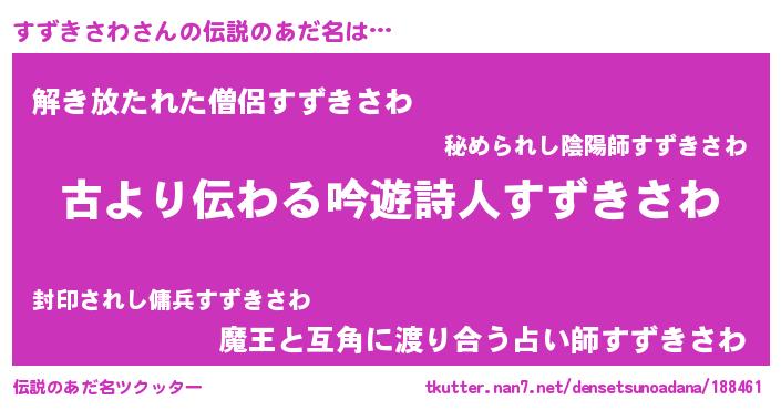 | 意味不明あだ名 | 『永久保存すずきさわ』『自称すずきさわ』 |