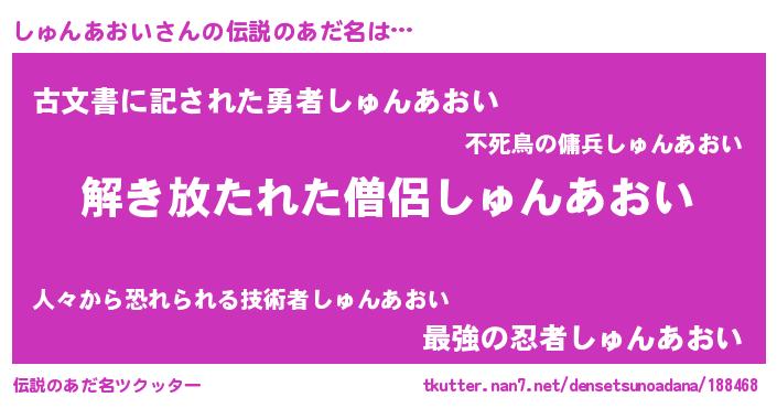 | 意味不明あだ名 | 『自称しゅんあおい』 |