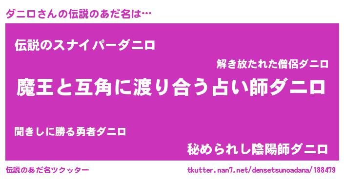 | 男性向けラノベタイトル風あだ名 | 『ダニロに滅ぼされるだけの簡単なお仕事です』 |