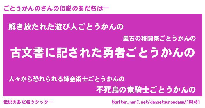 | 男性向けラノベタイトル風あだ名 | 『うちのごとうかんのが世界を掌握している!』 |