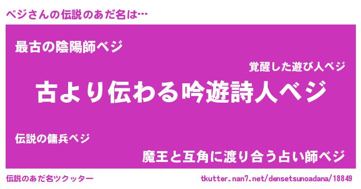 | 意味不明あだ名 | 『永久保存ベジ』『自称ベジ』 |