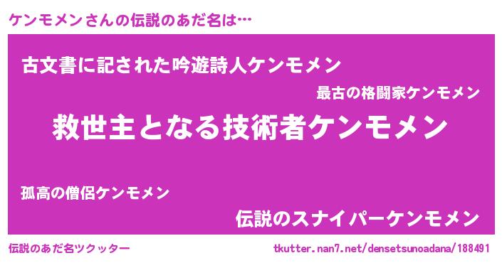| ヘコむあだ名 | 『ケンモメン(小並感)』『ケンふぇ~』 |