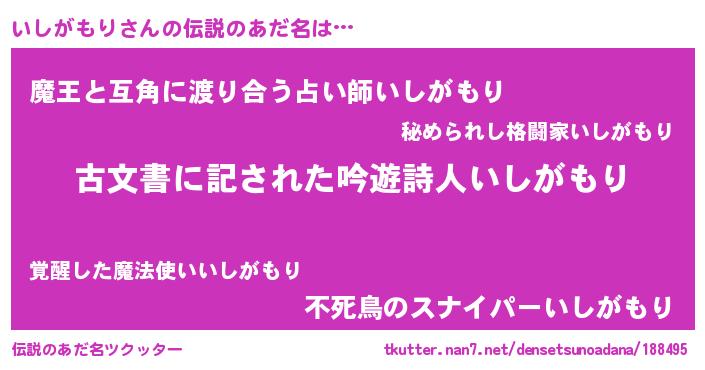 | ヘコむあだ名 | 『いしがもり(笑)』『いしもー』 |