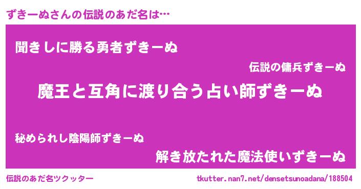 | ヒーロー風カッコイイあだ名 | 『愛の使者ずきーぬ』『ネオズキーヌ』 |