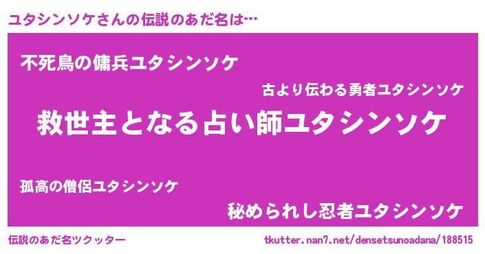 | 意味不明あだ名 | 『住所不定無職ユタシンソケ(43歳)』 |