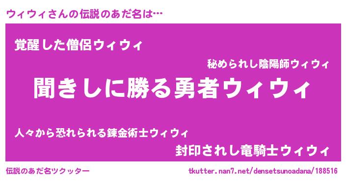 | ヒーロー風カッコイイあだ名 | 『ネオウィウィ』『炎刃騎士ウィ』 |