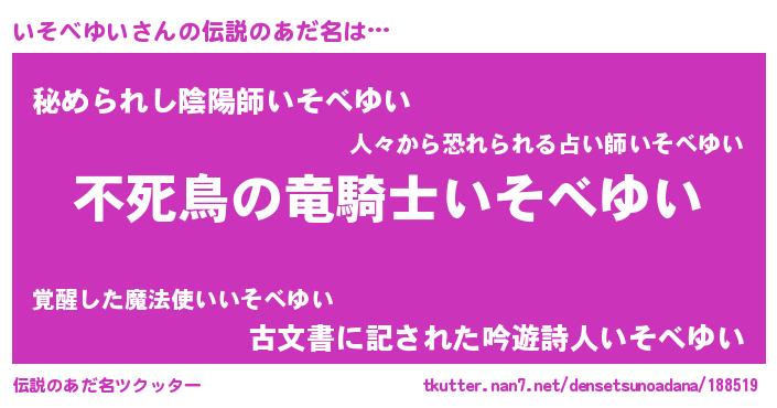 | ファンタジー風あだ名 | 『イソフェル』『エターナルイソベユイー』 |