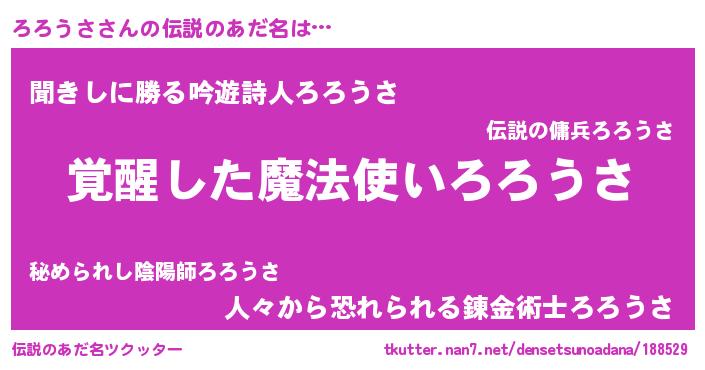 | 意味不明あだ名 | 『とにかく怪しいろろうさ』 |