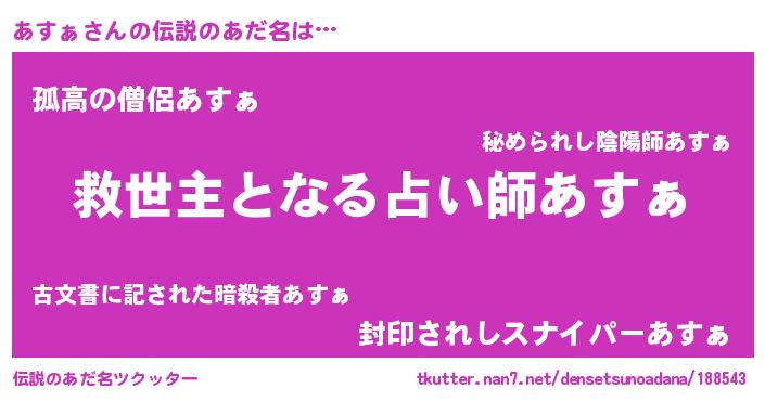 | ヒーロー風カッコイイあだ名 | 『天空の使者あすぁ』『黄金騎士アス』 |