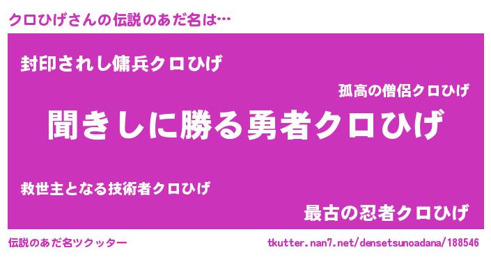 | ヒーロー風カッコイイあだ名 | 『仮面クロダー』『ネオクロヒゲ』 |