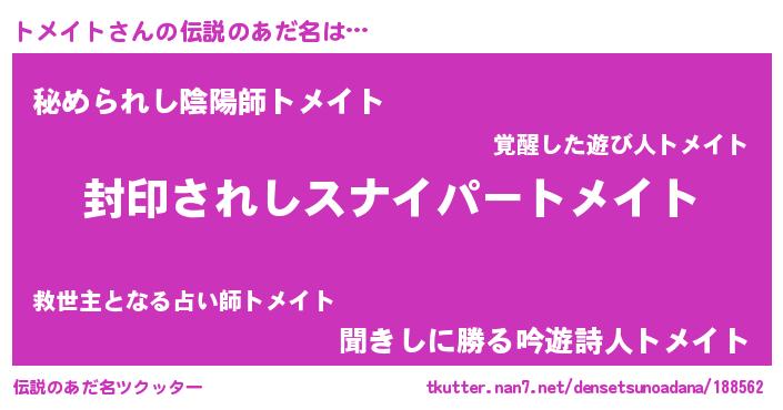 | 胡散臭い通販商品みたいなあだ名 | 『あなたにだけ特別に提供する世界で10本だけ現存している希少なブランデー…その名も「トメイト」』 |