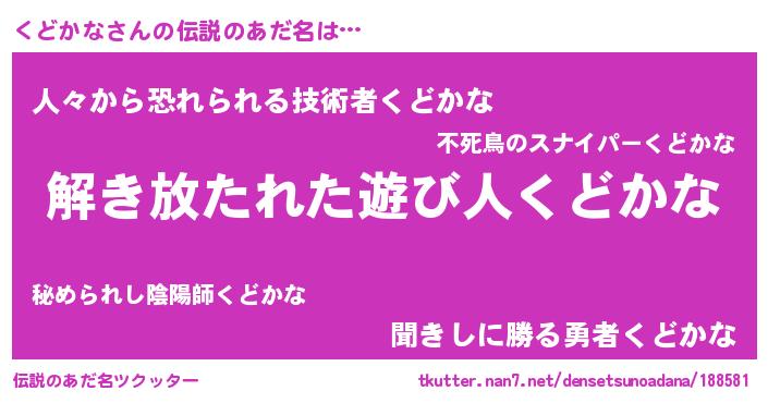 | ヒーロー風カッコイイあだ名 | 『サイバー戦士クドカナ』『仮面クドダー』 |