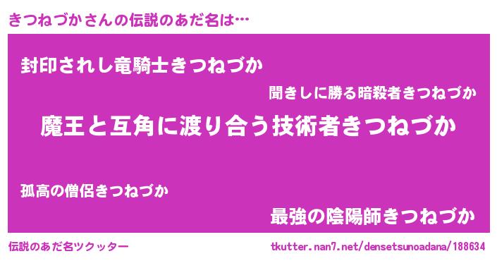 | 男性向けラノベタイトル風あだ名 | 『ノーゲーム・ノーキツネヅカ』 |