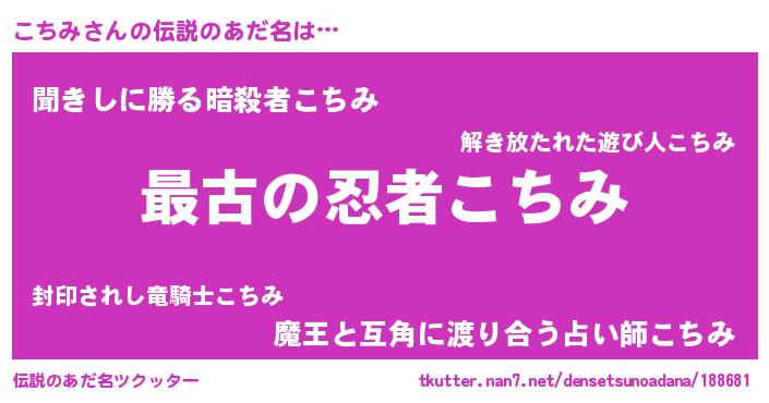| ファンタジー風あだ名 | 『エターナルコチミー』『コチディッシュ』 |