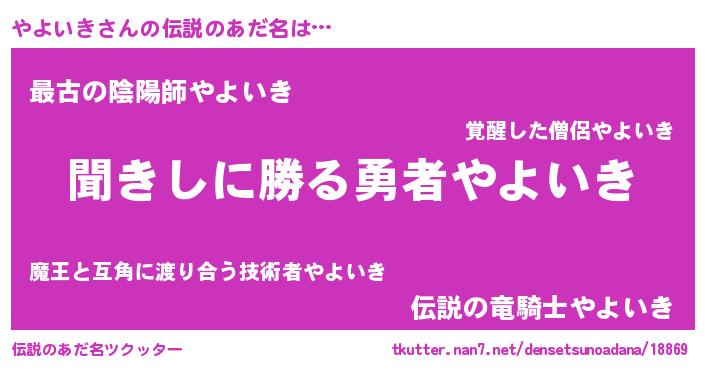 | 意味不明あだ名 | 『住所不定無職やよいき(84歳)』 |