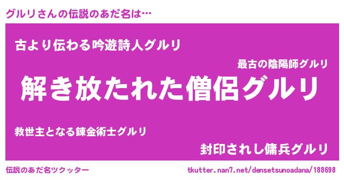 | ヒーロー風カッコイイあだ名 | 『銀牙騎士グル』『ネオグルリ』 |