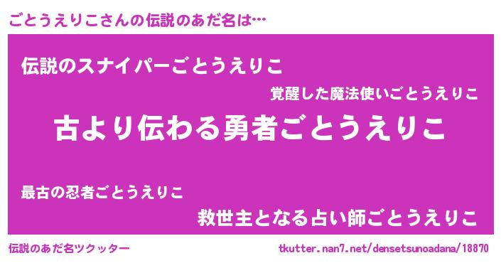 | 男性向けラノベタイトル風あだ名 | 『誰もが恐れるあのごとうえりこが、ぼくの専属メイドになるようです。』 |