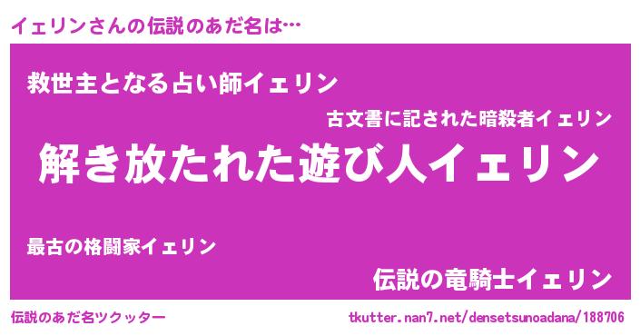 | ヒーロー風カッコイイあだ名 | 『魔戒騎士イェ』『愛の使者イェリン』 |