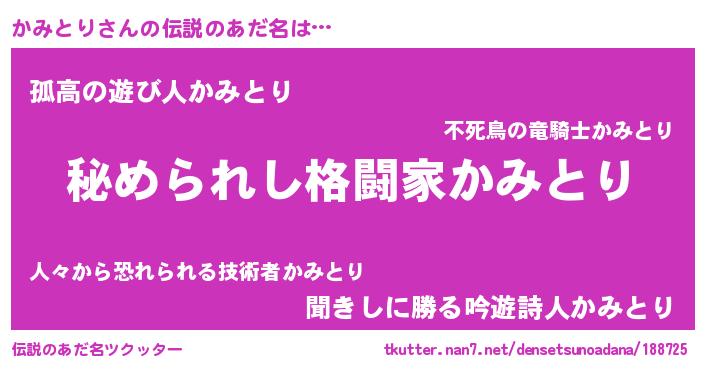 | ファンタジー風あだ名 | 『エターナルカミトリー』『ゼカミトゥ』 |