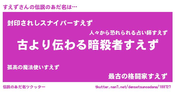 | 意味不明あだ名 | 『自称すえず』『永久保存すえず』 |