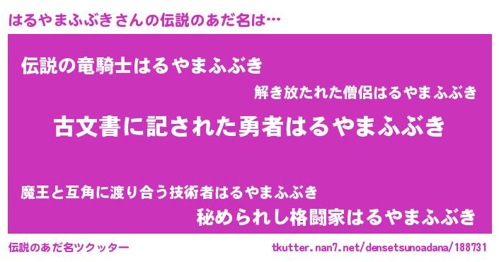 | ヒーロー風カッコイイあだ名 | 『究極戦士ハルヤマフブキ』 |