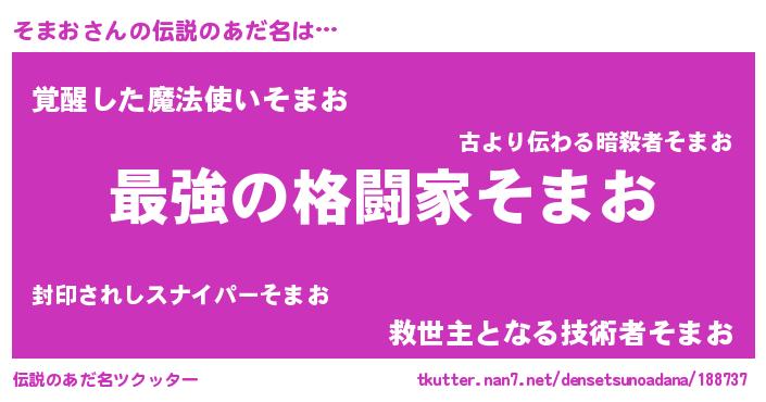 | ファンタジー風あだ名 | 『エターナルソマオー』『ヴァルソマーナ』 |