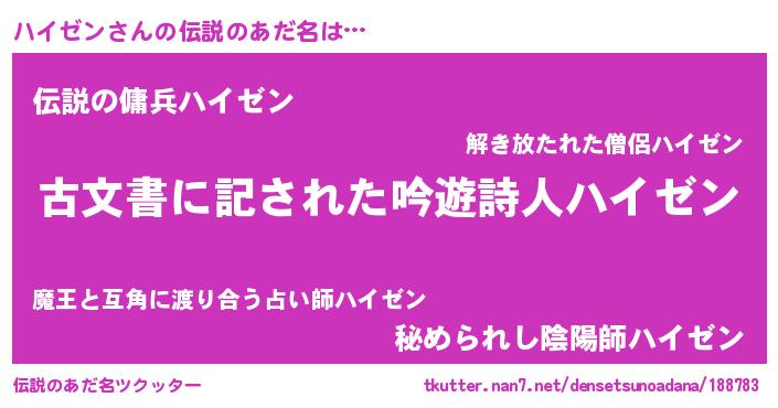 | 意味不明あだ名 | 『自称ハイゼン』『永久保存ハイゼン』 |