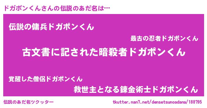 | ヘコむあだ名 | 『ドガポンくん(爆)』『ドガにゅー』 |