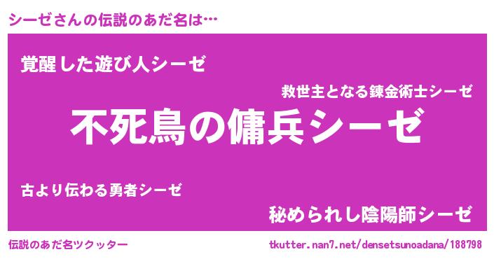 | ヒーロー風カッコイイあだ名 | 『スーパーシーゼ』『仮面シーダー』 |