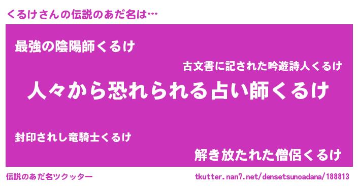 | 意味不明あだ名 | 『住所不定無職くるけ(56歳)』『自称くるけ』 |