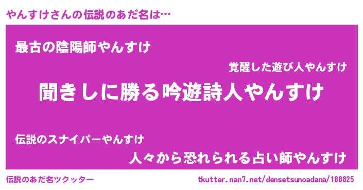 | ヘコむあだ名 | 『やんすけ(小並感)』『豆乳』 |