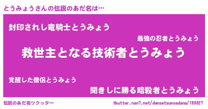 | ヘコむあだ名 | 『とうふぇ~』『とうみょう(小並感)』 |
