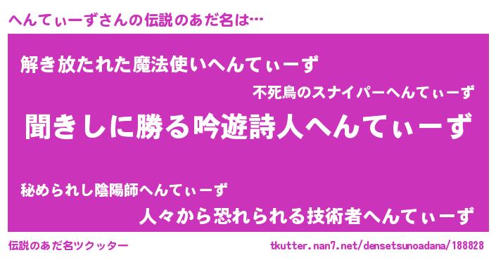 | 女子向けラノベタイトル風あだ名 | 『へんてぃーずなんてお断りですっ。』 |
