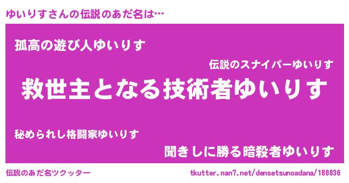 | ポケモン風あだ名 | 『ユイセウス』『ユックウザ』 |