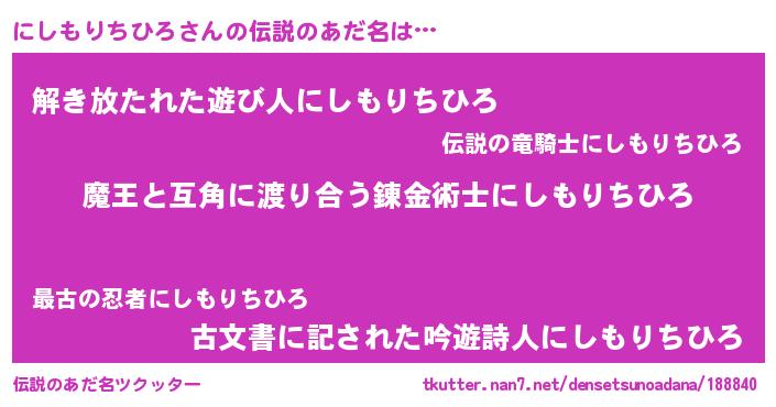 | 意味不明あだ名 | 『自称にしもりちひろ』 |