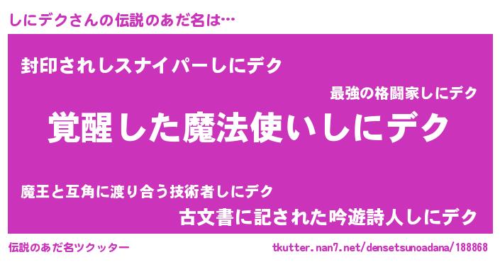 | 意味不明あだ名 | 『自称しにデク』『ニラ科しにデク属』 |