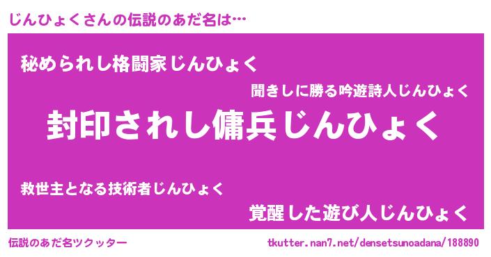 | 男性向けラノベタイトル風あだ名 | 『この素晴らしい世界にじんひょくを!』 |